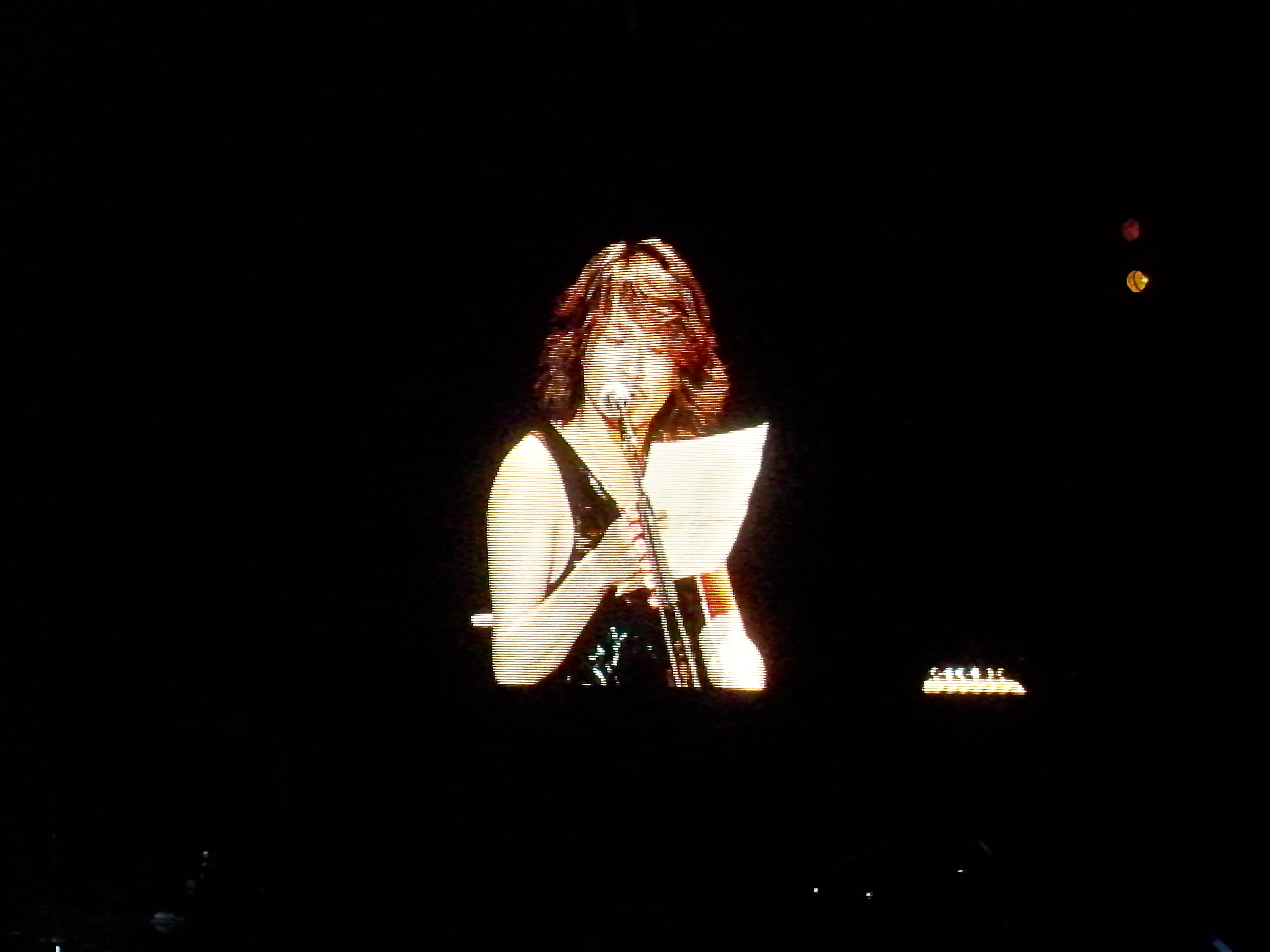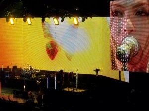 Durante el show se proyectaron paisajes, efectos tecnológicos, muchos gráficos mecha y por supuesto, todo estuvo lleno de las mariposas características de Butterfly, su última producción. La letra de Anata fue proyectada en Romaji, fue una clase karaoke para que todos los asistentes hicieran parte del coro. Fuegos pirotécnicos, llamas y las bananas de Tetsu agitaron la arena con los gritos de las fans, y aún más cuando Hyde mandó besos con sus manos a las espectadoras, y me pareció que en alguna ocasión casi se cae bailando. Lloré cantando Anata, fue hermoso. Ken leyó un papel blanco que lo incluía ¨tomando fotos de maniquís desnudos en Nueva York¨, reí hasta reventar. Hicieron parte del listado de cancionesReady Steady Go! , Driver’s high, Flower, Honey, y Blurry eyes. También incluyeron éxitos de sus álbumes más recientes donde encontramos XXX, Chase, Good Luck My Way, My Heart Draws a Dream, entre otros. Ken le dio a Yuki una bolsa con recuerdos de NY, entre los que había un Monopoly (algunas fans afirman que era la versión especial de ´The Nightmare Before Christmas´) y un pocillo de la ciudad de Nueva York.