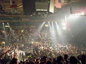 I got in at about 7:30 p.m., the place was almost half empty, I thought they would not do it, filling a vast scene like Madison Square Garden seemed to me hard to a French named band who sings in Japanese but our hearts drew a dream and the dream became true. I found my seat and realized it was further than expected from the stage, I complained to myself since I bought my ticket in a fans presale and I didn’t check my e-mail earlier so that I could buy better tickets, when I got to tickets best ones were already sold out. I was anyway too excited as to complain and just enjoyed the show. It was magic, It was suddenly full, MSG was full of fans from everywhere, (I am actually from Colombia, and traveled to NYC to see their show). I found people from many places in the US who just traveled to NY to see the concert, many Japanese fans actually travelled from Japan just to have a spot in the concert, many of them where wearing L’Arc’s alike outfits and traditional Japanese kimonos with a visual touch.