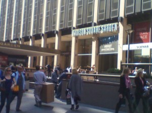 Tomé el metro de Nueva York directo al Madison Square Garden y fue increíble escuchar fans cantando o tarareando canciones de L’Arc-En-Ciel durante el viaje, no había diferencias en el internacionalmente conocido crisol de Nueva York. Cuando llegué al lugar, buscaba desesperadamente un enchufe para recargar mi cámara, había estado tomando cientos de fotos en la ciudad que nunca duerme y la batería definitivamente no resistiría todo el show, así que entré a un café-bar en la estación de Pensilvania, enchufé mi cámara y corrí al baño para maquillarme.