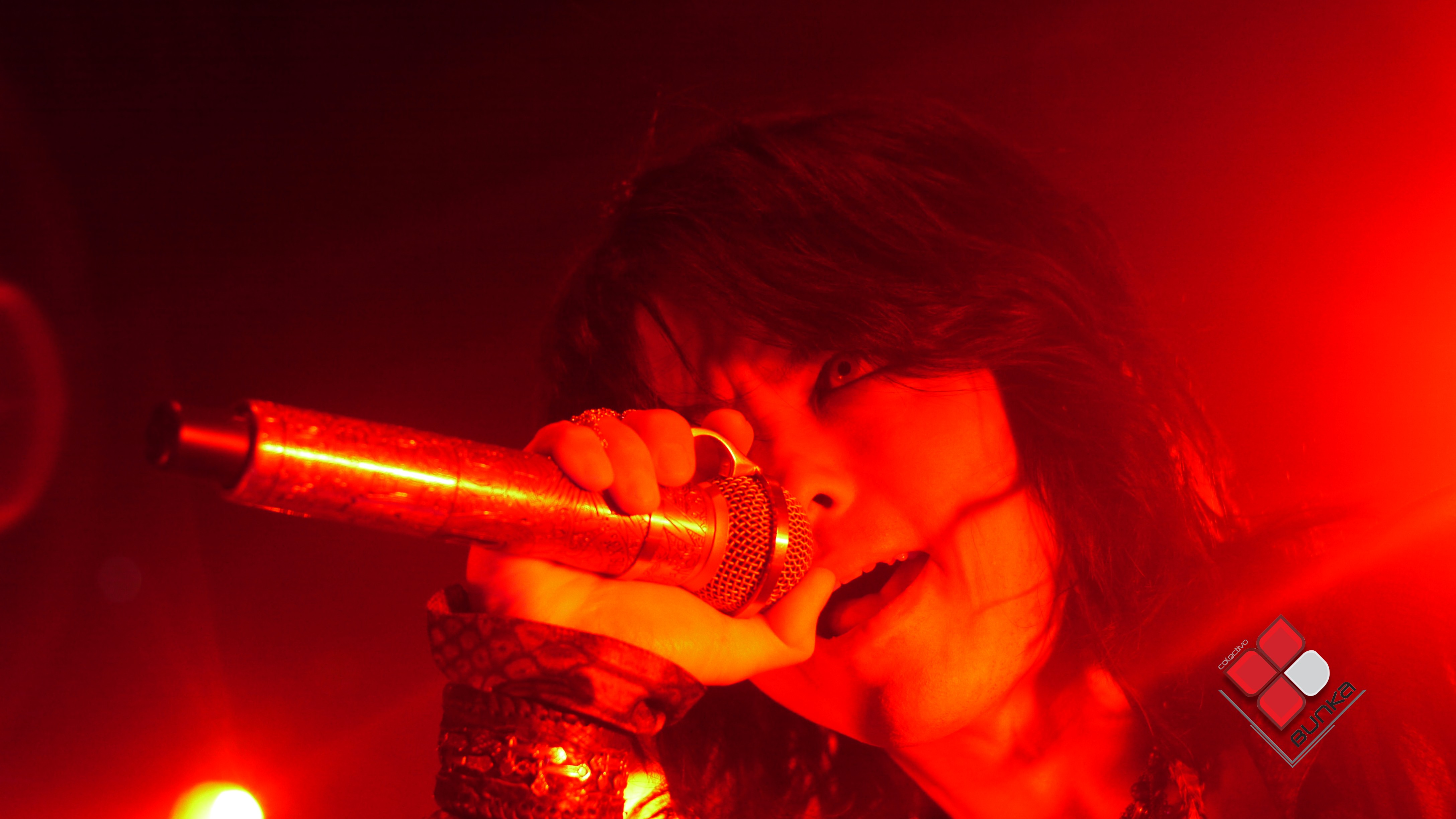 DSC00279A las 9 p.m. se oscureció el lugar y los gritos histéricos de los asistentes retumbaron las paredes del salón. Las luces de colores empezaron a encenderse paulatinamente y veíamos a los músicos tocar la primera canción. La euforia fue incontrolable cuando Hyde emergió al escenario cantando “Vampire Depression” en un perfecto inglés. El show había oficialmente empezado.